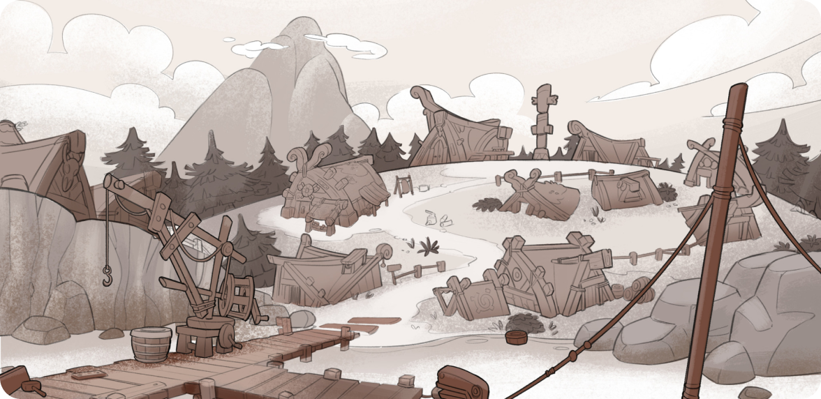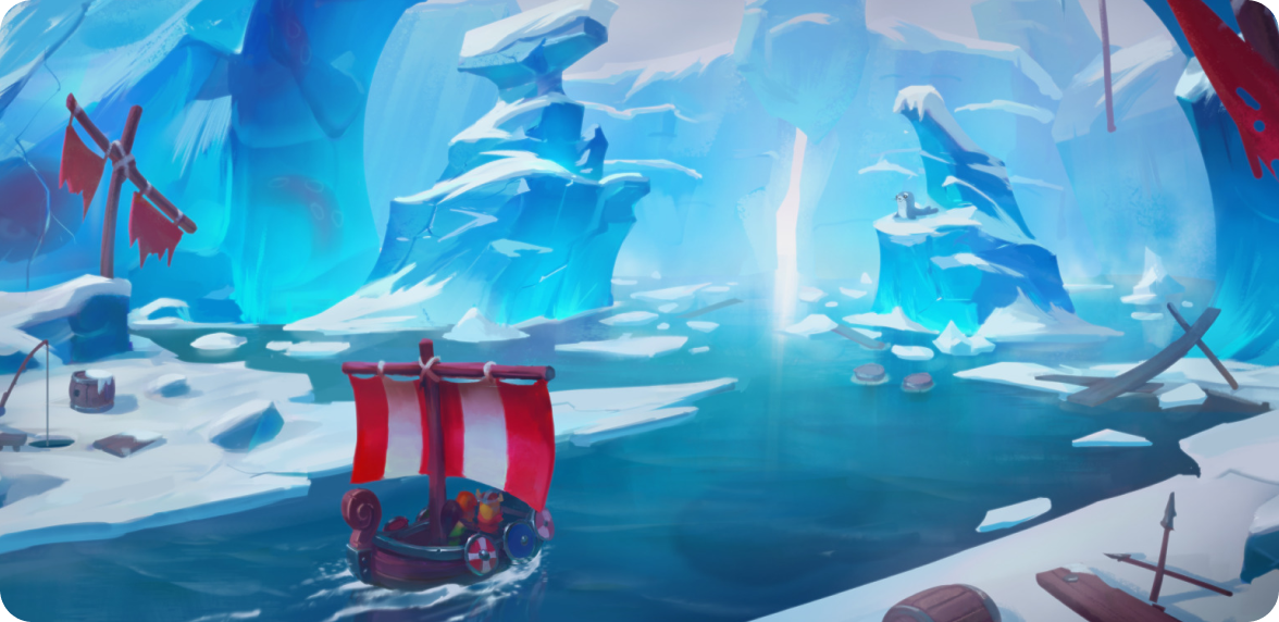 All of the initial art for Tiny Vikings was created by the Game Art Brain team, establishing the core visual style of the game. This comprehensive base set included all the 2D concepts for the diverse locations – from the cozy longhouses of their village to the mysterious forests, icy landscapes they traversed, and even the majestic realm of Asgard. Our 2D environments were meticulously crafted to be both visually appealing and to effectively set the scene for their adventures. We paid close attention to color palettes, atmospheric details, and overall composition to create a world that felt both inviting and exciting to explore. We also developed the initial 2D character and creature concepts, bringing the quirky personalities of the tiny Vikings to life with distinct visual identities that reflected their individual traits and roles. We explored a range of styles, aiming for a balance between cuteness, charm, and a touch of Viking ruggedness. These foundational 2D concepts then informed the creation of the final 3D game world. We focused on creating models that were faithful to the original 2D concepts while also leveraging the capabilities of 3D to add detail and dynamic visual interest. Our goal with the 3D work was to complement the initial 2D art style, creating a cohesive and visually appealing world that players could truly immerse themselves in on Steam.